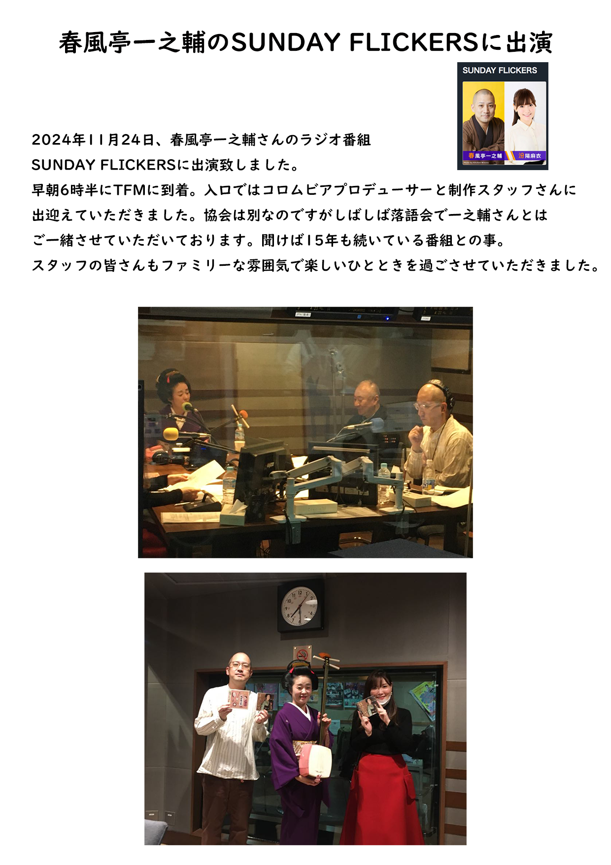 11月 JFN系放送局「SUNDAY FLICKERS」出演