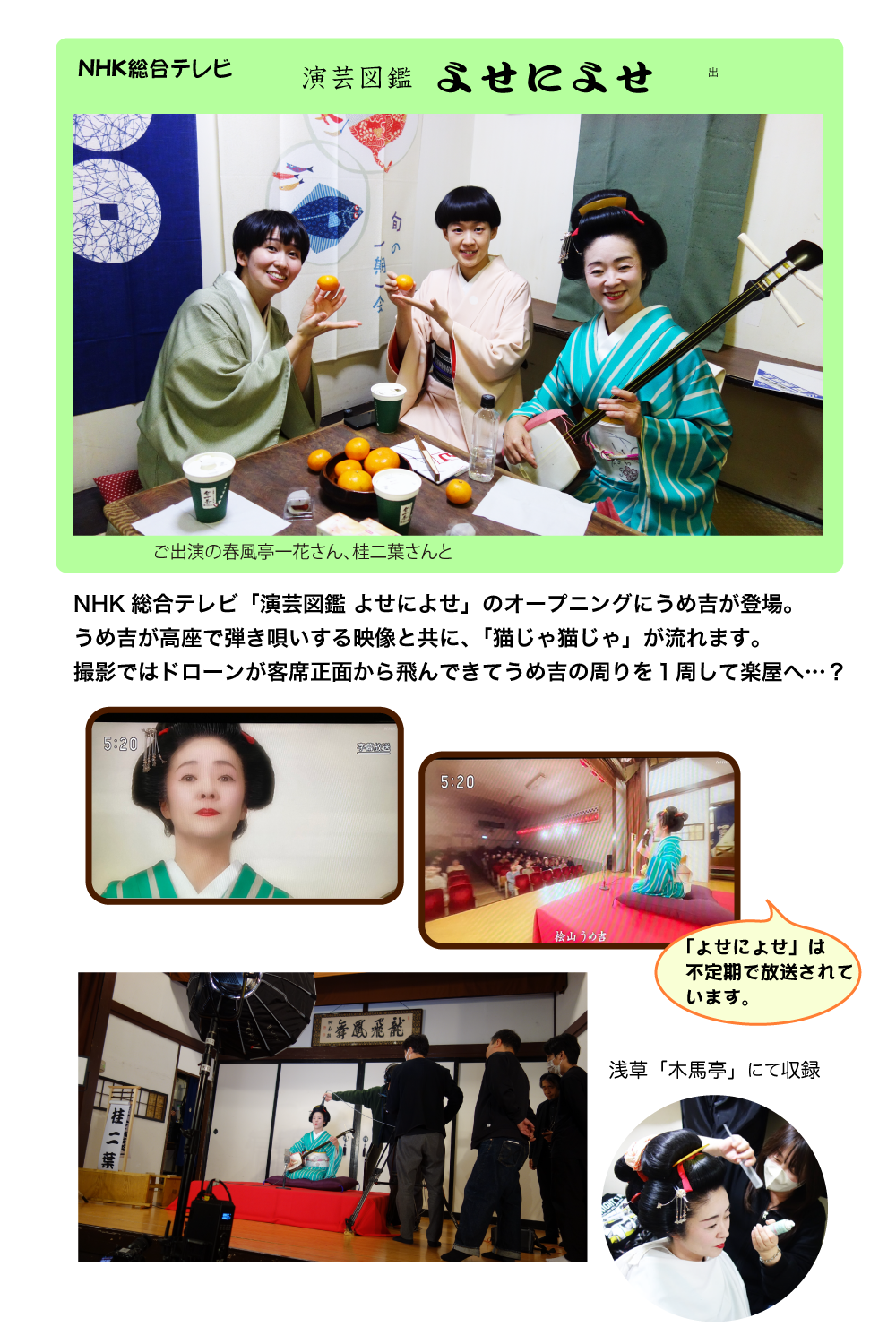 2月 NHKカルチャー青山教室オンライン配信「うめ吉のニッポンしましょ!寄席と三味線の世界」