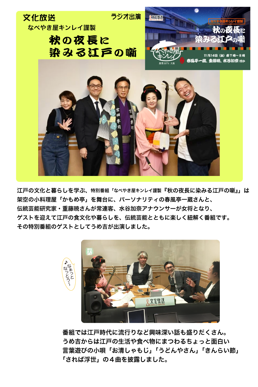 11月 文化放送「秋の夜長に染みる江戸の噺」出演2024年